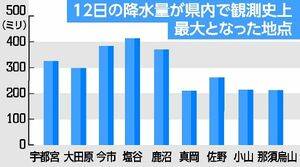 台風19号 気象情報 9地点 観測最大降雨量 塩谷413ミリ 宇都宮325ミリ 栃木県内12日 社会 県内主要 下野新聞 Soon ニュース 台風19号 下野新聞 Soon スーン