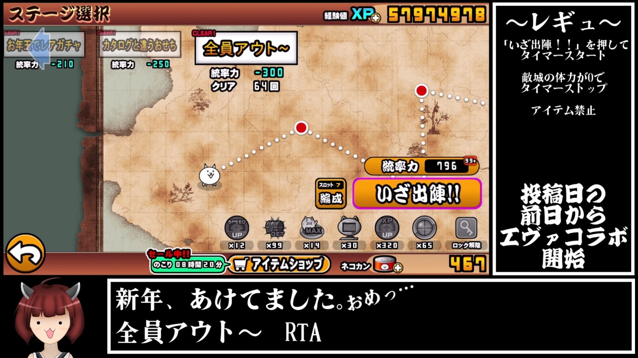 にゃんこ大戦争rta 新年 あけてました おめっ 全員アウト 00 47 53 Voiceroid ニコニコ動画